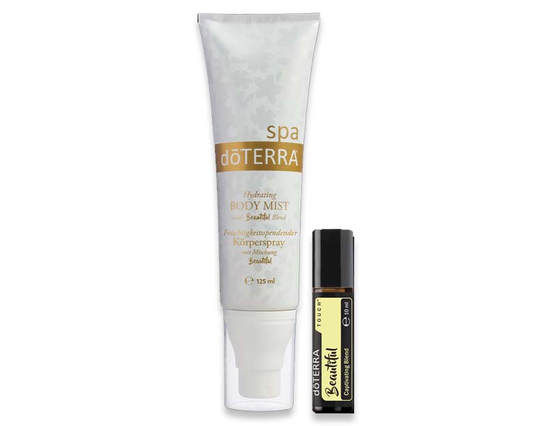 A doTERRA Határtalan szépség termékduó egy különleges szépségápolási csomag, amely két prémium terméket tartalmaz: a doTERRA Spa Hidratáló testpermetet és a Beautiful Touch varázslatos illóolaj‑keveréket. Ez a párosítás összehozza a testápolás és aromaterápia előnyeit, hogy mind a bőrünk, mind a hangulatunk ragyogóan egészséges legyen.